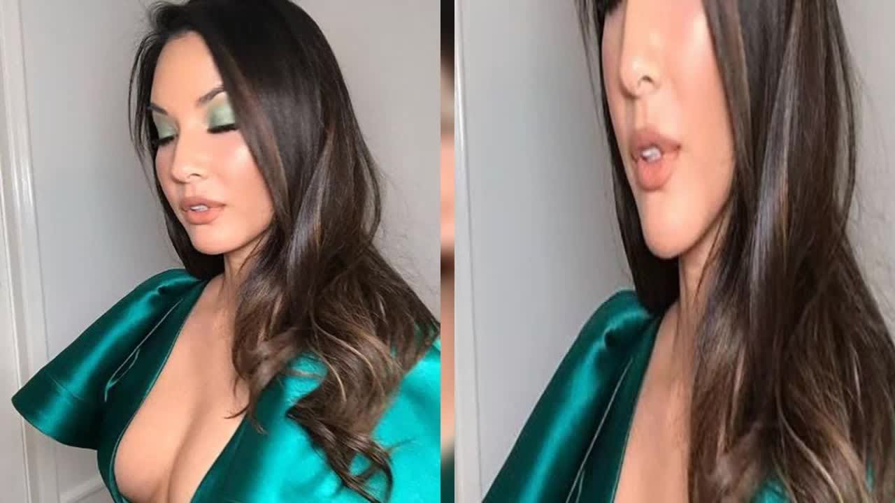 The three photos showed Munn, 38, attempting to take “glam pics” while wearing an emerald green gown, but instead made funny faces or blinked as she took the pictures.